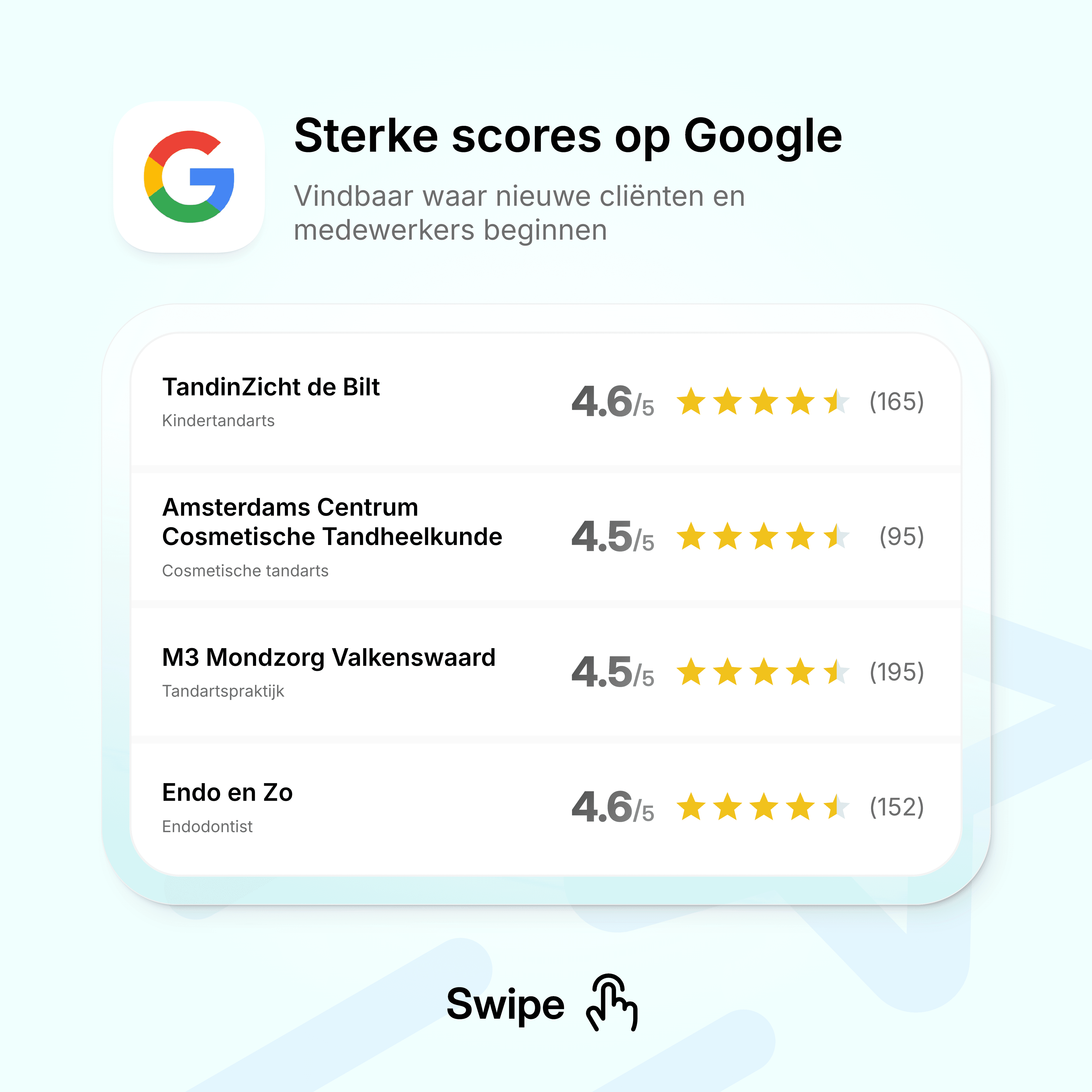 Een slimme verdeling tussen reviewverzoeken voor de twee belangrijkste reviewplatforms in de mondzorg: Google én ZorgkaartNederland.