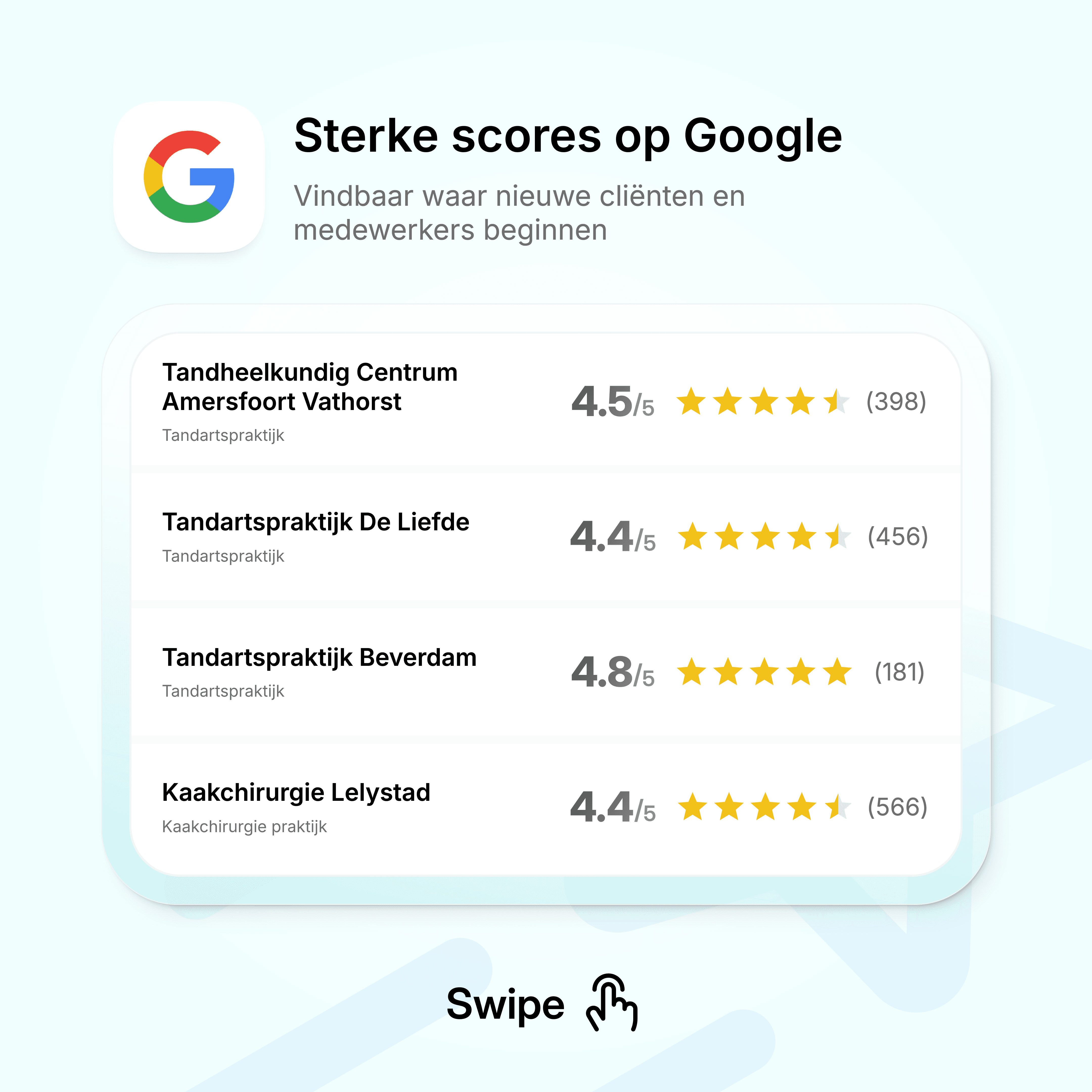 Meer reviews geven jouw praktijk een directe boost in Google.