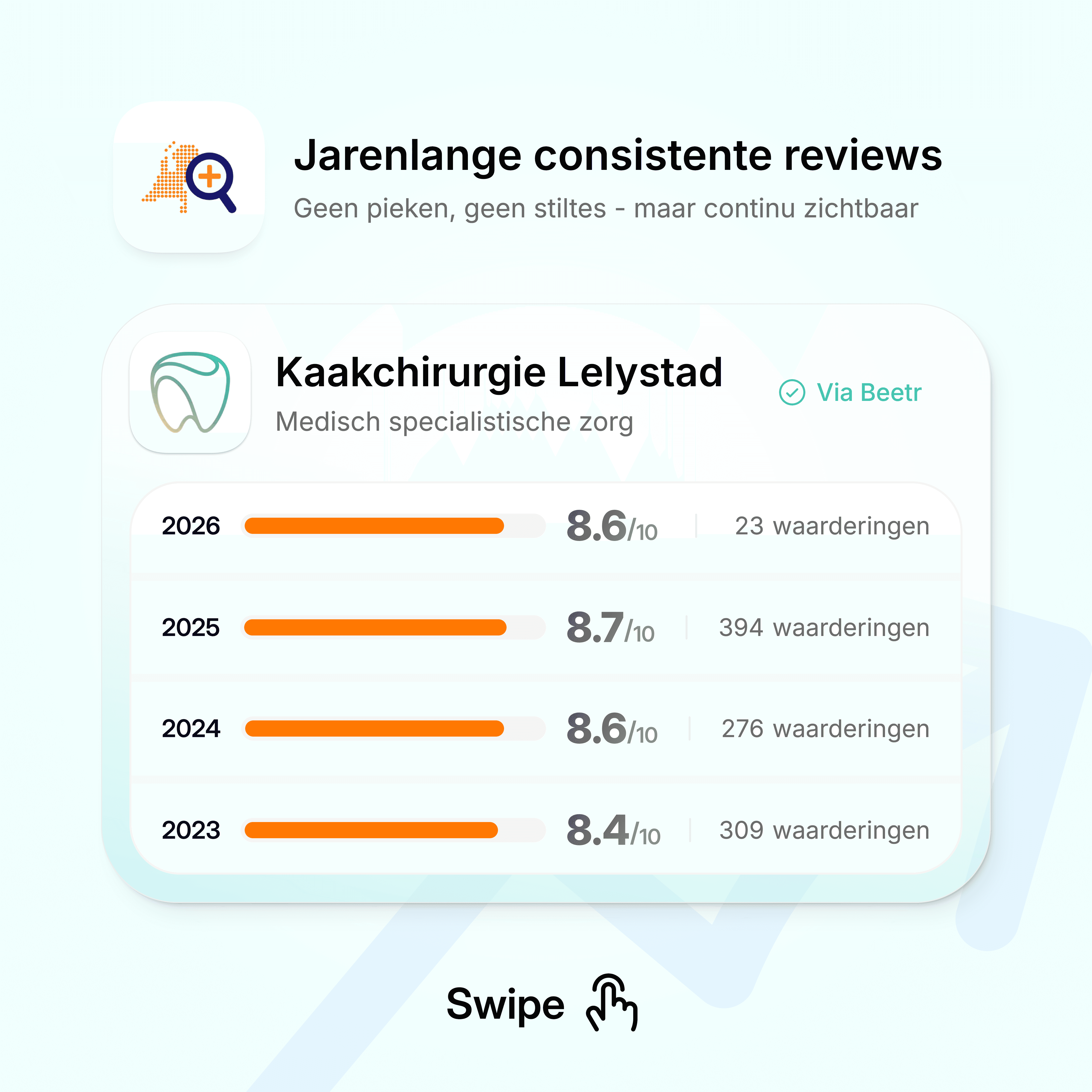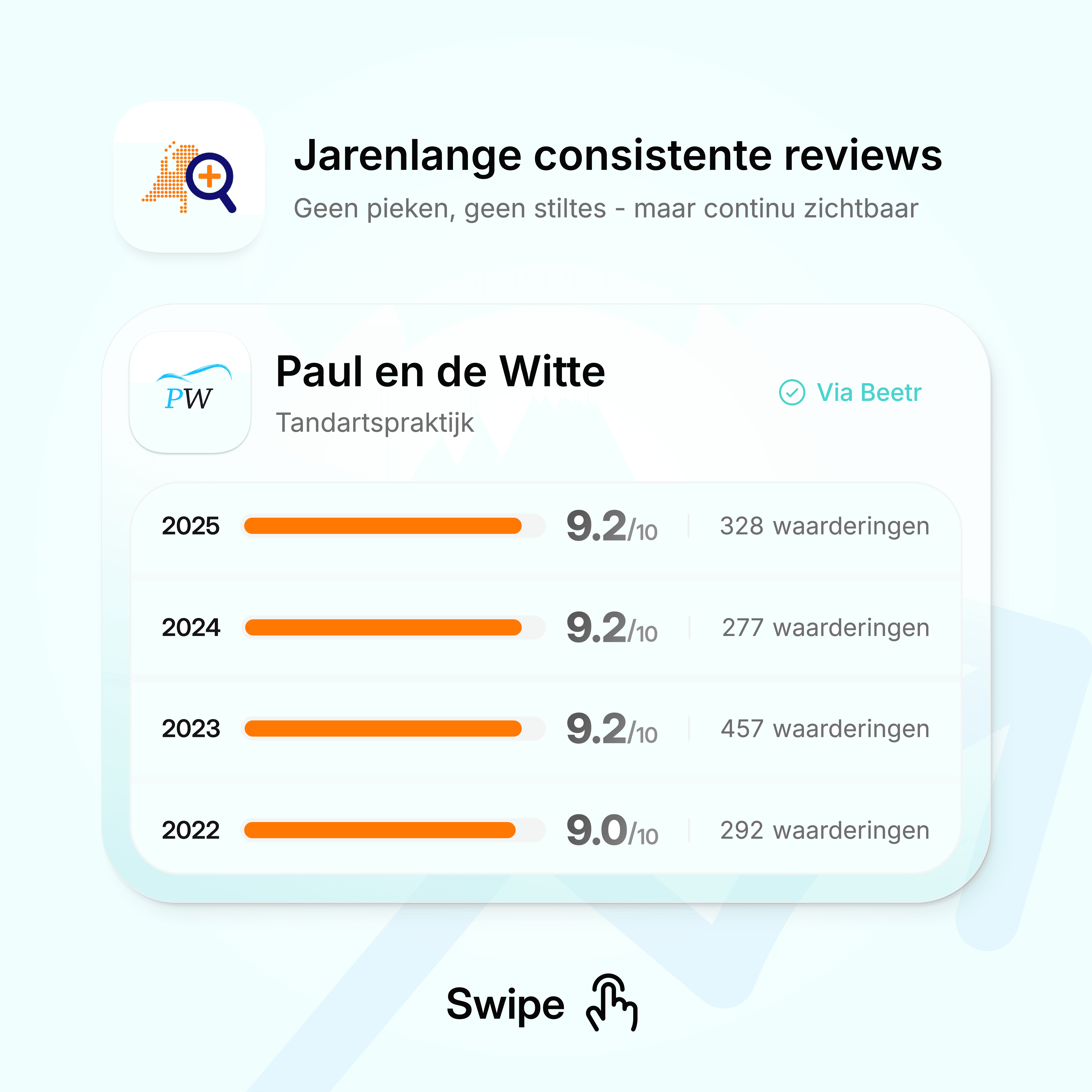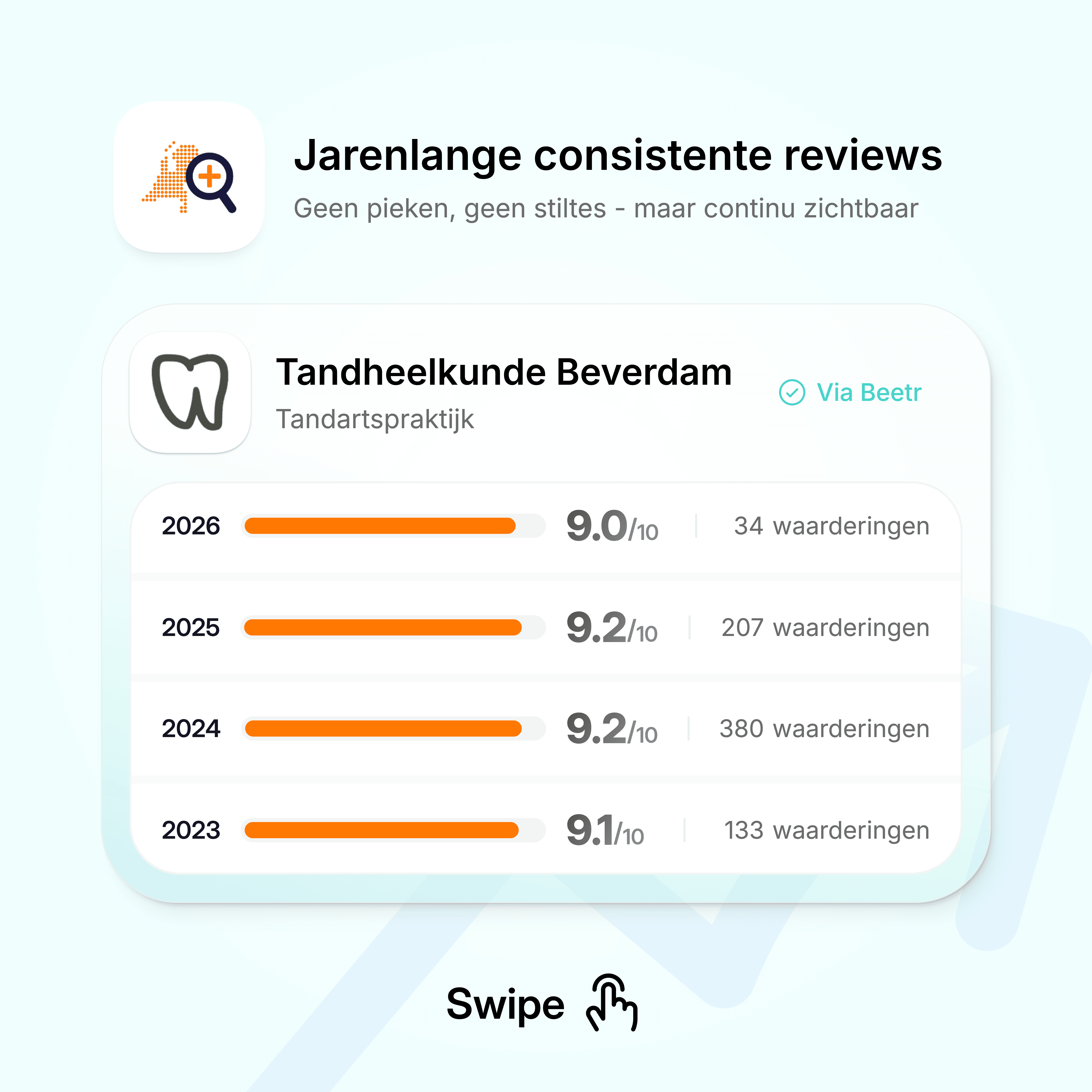 Beetr maakt je online reputatie eerlijk, actueel en in lijn met de echte ervaring in je praktijk.